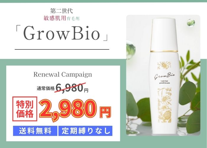 ※GrowBio定期便は毎月自動でお届けするコースです。2回目以降は28%OFFの4,980円(税込5,478円)でお届けいたします。初回発送日から30日後に発送されます。その後も30日毎の発送となります。解約をご希望の方は、発送予定日の3日前までに納品書と商品の空箱(化粧箱)化粧箱が弊社に到着する様、ご送付をお願い致します。本キャンペーンは、初めてご購入の方、お1人様1本(1世帯1本)限りとなります。購入回数のお約束はございません。お気軽にお申し込みください。